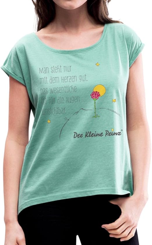 for "Der Kleine Prinz Zitate Man Sieht Nur Mit Dem Herzen Gut / Der Kleine Prinz Zitat Man Sieht Mit Dem Herzen Frauen T Shirt Mit Gerollten Armeln Amazon De Bekleidung"